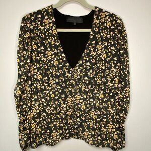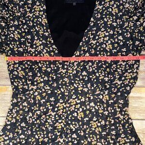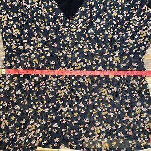 Kendall & Kylie Sheer Navy Button-up Deep V-Neck Blouse Balloon Sleeves size M