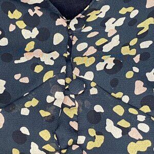 Elevate your wardrobe with this stunning Kendall & Kylie blouse. The multicolored chiffon fabric gives a bohemian and hipster vibe, perfect for any occasion from casual to business. The deep V-neckline and button closure add a touch of elegance, while the balloon sleeves and pleated accents create a unique and stylish look. This blouse is perfect for summer, fall, or spring and can be easily dressed up or down. Hand wash only for optimal care. Available in size M.