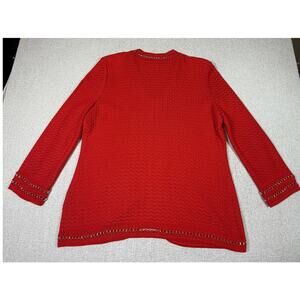 Misook Women Size Large Orange Zip Front Gold Chain Metal Glam Corpcore Cardigan