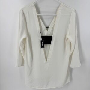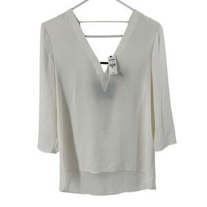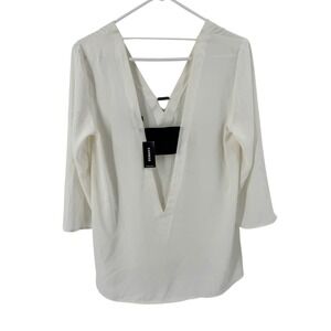 NWT EXPRESS White V Neck Open Back 3/4 Sleeve Blouse Top Size S P