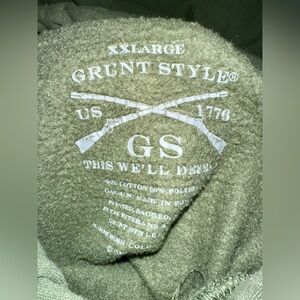 Bold olive green hoodie with striking devil graphic. Features unique Grunt Style design. Ideal for casual wear.