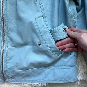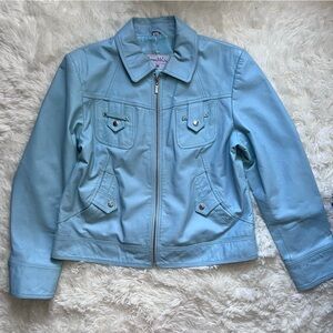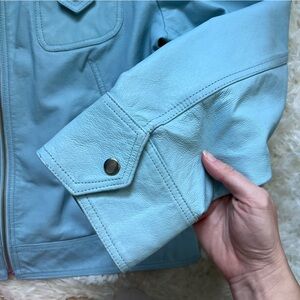 • Pamela McCoy - Vintage genuine leather front zip moto jacket in sky blue