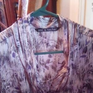 Stylish blouse with a unique purple pattern. Ideal for any occasion.