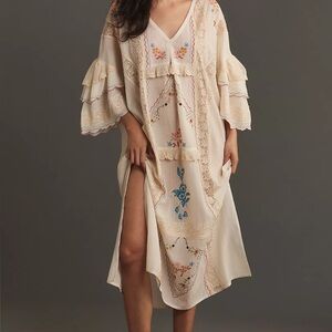 Anthropologie Cream Embroidered Dress