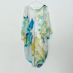 NWT Chicos Woman S/M Sheer Floral Open Front Flowy Kimono Boho Resortwear