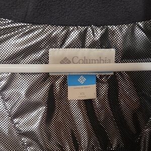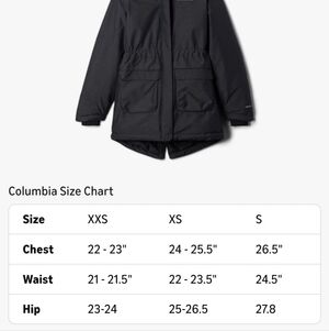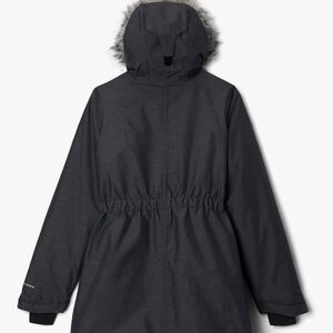 Stylish Columbia parka in charcoal. Features a cozy hood with faux fur trim. Perfect for cold weather.