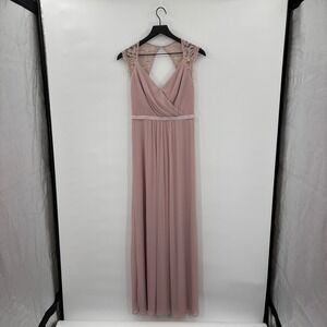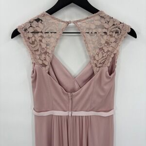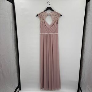 Davids Bridal Light Pink Bridesmaid Dress Size 4 Lace Cap Sleeve Keyhole Back