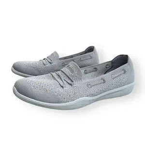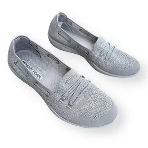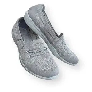- Skechers Newbury St “Easily Adored” women’s slip-on knit shoes in gray
