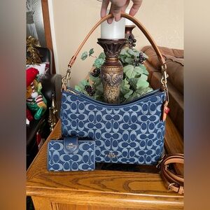 Reserved for @ozuale. Coach Laurel Signature Denim Shoulder Bag & Wallet