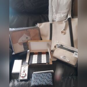 New Coach- Kate Spade- Michael Kors ..Muti Items & Multi Colors.. 1 Kate Spade Glove & Hate Set New with tags in gift box reg price $139.00 price is on gift box.One Coach Wristlet New with Tags regular price I believe was $88 .One Michael Kors Phone Wallet Wristlet In Gift Box Regular price is 128.00. One Michael Kors Keychain With Tags Regular $58 ..One Michael Kors Tote with Tags priced at $198 and comes with Matching Wristlet wirh Tags regular price $78 ..Total Value $689.00 Trying to do quick sale so I won't have to list the items.Comes with all 6 items all New with Tags.... all will be shipped together..These would make great gifts
