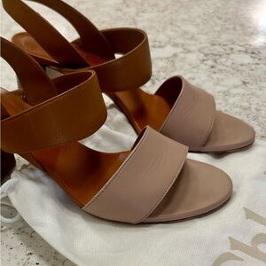 A dual colored neutral sandal offers more versatility and interest than the sea of “nude” sandals and pumps we have become accustomed to, and the block heel design means that you get the comfort and ease along with the flattering height….these were worn on 1-2 occasions and are ready to be someone’s staple or saved in their Chloe dust bag to come out for special occasions.