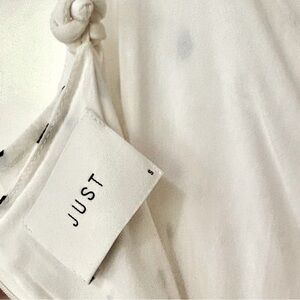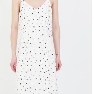 Just Female white midi dress with black polka dots. Sleeveless with adjustable straps, size small. In good pre-owned condition, laundered and ready to wear.