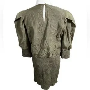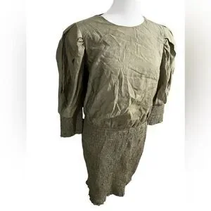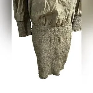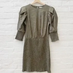 Rebecca Minkoff Geneva Smocked Puff Sleeve Dress in Army Green large midi