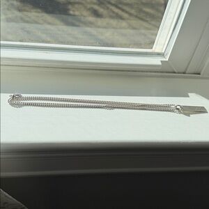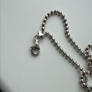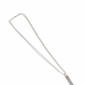 Gucci 925 Sterling Silver Bar on Double Ball Chain Necklace & Brown Pouch & Box