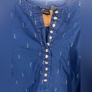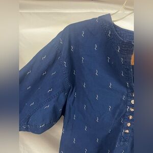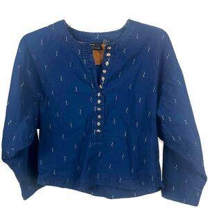 Vintage Women’s Boho Henley Printed Blue Pop Over Long Sleeve- Size Small