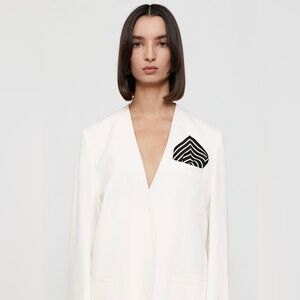 A pocket size take on TOTEME’s signature monogram silk scarf. Square, striped patterned scarf with a center namesake monogram. Tuck loosely into the chest pocket of your favorite blazer or adore your hair, wrist or handbag. New!
