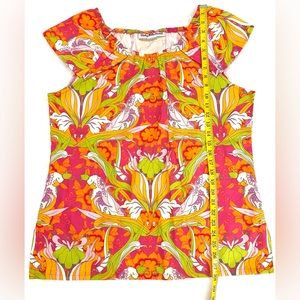 Haley & the Hound Womens XL Orange Floral Tropical Print Top Classic Preppy