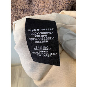 Keywords: ML Monique Lhuillier, animal print dress, mini dress, long sleeve dress, smocked dress, womens dress, size 10, brown dress, black dress, mock neck, tiered skirt, viscose dress, party dress, casual dress, boho dress, Anthropologie