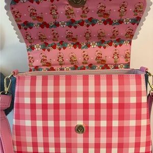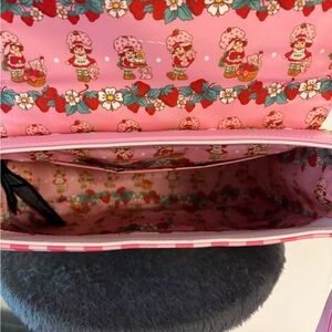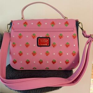 BRAND NEW, NEVER BEEN USED Strawberry Shortcake bag from Loungefly. Received for Christmas and never used. My kitten put a few claw marks on the front-price reflects. Last 2 pics are of the claw marks 🥺🤦🏼♀️