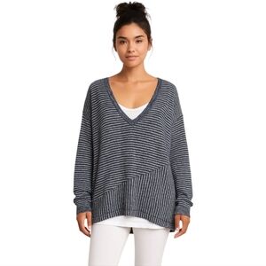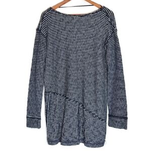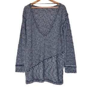 FREE PEOPLE Oversized Striped Long Pullover Top Lightweight Sweater Navy White Small