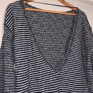 FREE PEOPLE Oversized Striped Long Pullover Top Lightweight Sweater Navy White S