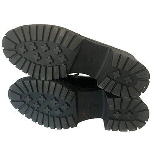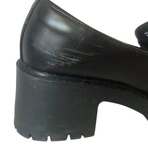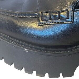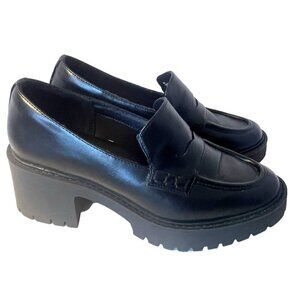 Womens 8.5 Chunky Platform Slip On Penny Loafer Black Faux Leather Lug Soles