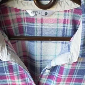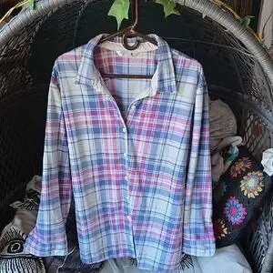 Chic plaid design with button-down front. Soft fabric for comfort. Ideal for casual wear. This top is very soft and warm its fleece material perfect for winter. in good used condition
