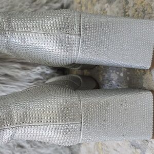 Mia Iva Silver Platform Boots | Sparkly Block Heel Ankle Boot| Size 7.5