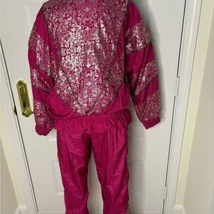 80s/early 90s jog set, hot pink, metallic, zip jacket, wind suit, wind pants, glitz, bling, colorful, artsy, grandmacore, retro, the Goldbergs, Golden Girls (Blanche would totally wear).