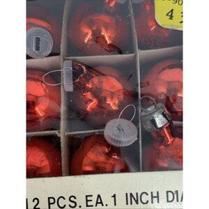 Vtg Miniature Glass Ball Christmas Tree Ornaments Red Shiny Gold Color 1" Dia