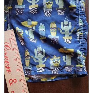 Andy & Evan Boys 4T Swim Trunks Blue Cactus Print Elastic Waist NO Drawstring
