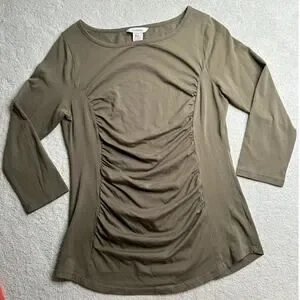 Sundance: Olive-Brown Draped Front Ruched 3/4 Sleeve Top