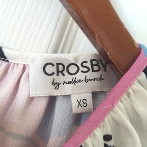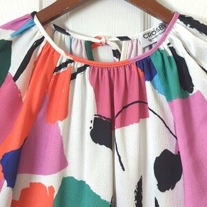 Crosby by Mollie Burch Brynn Abstract Gathered Neck Short Flutter Sleeve Blouse