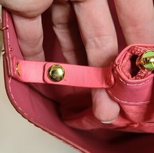 Tote & Wristlet: 100% genuine leather; goldtone foil-stamped signature logo; goldtone hardware.
