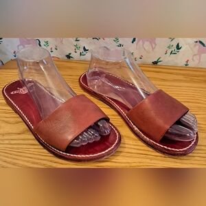 EUC Freebird Burgundy Leather Slip On Flat Casual Boho Sandal FlipFlop Shoe SZ 9