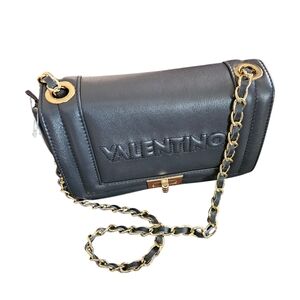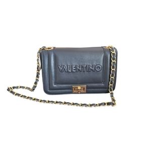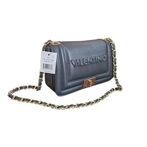 NWT - Valentino - Midnight Blue Leather Gold Chain Embossed Shoulder Bag