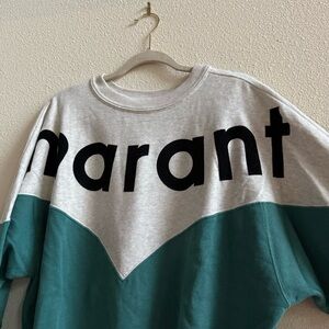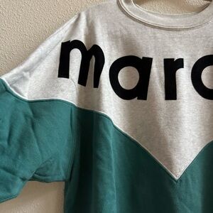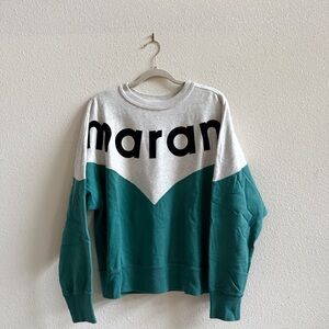 Chic Isabel Marant sweatshirt with bold logo. Features cream and green color scheme.