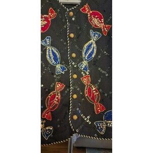 Vtg Womens Belle Pointe Blacknit Christmas Sweater Vest Candy A200 Large Nice