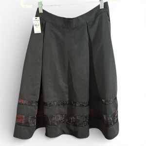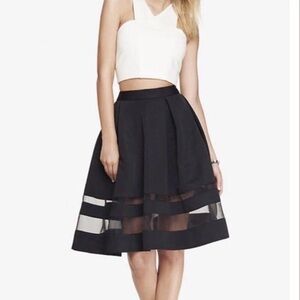 Black Pleated A-Line Skirt with Sheer Panel at Hem from Express.