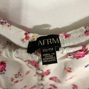 Chic floral bodysuit by AFRM. Features pink floral pattern on cream background. Off-shoulder design with button details. Perfect for stylish outings.