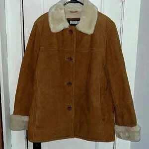 Canvas Genuine Leather Coat with Faux Fur Lining