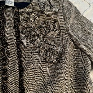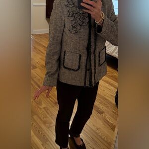 100% Silk Doncaster Women's Brown Blazer with Floral Accents