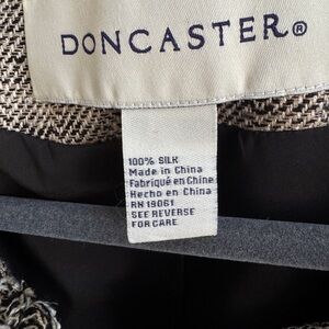 Unveil timeless sophistication with this Doncaster 100% Silk Blazer — a classic wardrobe staple with standout texture and detail. The woven silk fabric offers both comfort and refined style, while the unique floral-inspired accents make it a favorite for work, evening, or weekend wear. Fully lined and crafted with quality tailoring that Doncaster is known for.