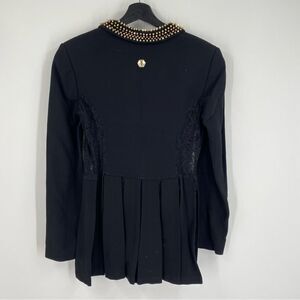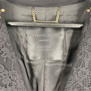 Philipp Plein Women’s Pleated Hemline Black Lace Detail 1 Button Blazer Jacket M