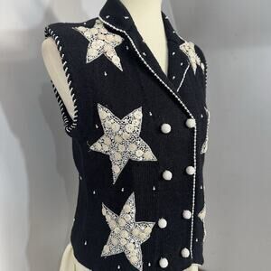 VTG 90s Bellepointe Holiday Sweater Vest Small Christmas Knit Cardigan Stars Top