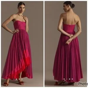 Anthropologie Hutch Calloway Strapless Bustier Tulle Maxi Dress Purple Red Sz 12