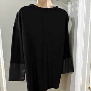 NWOT Jones NY Leather Look Mixed Media Tunic in size small. I'm not sure how to describe this tunic, except it has a faux leather looks on one side and the sleeve trim matches. Well made with a unique style and flattering fit. Washed but never worn.