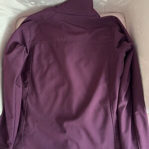 Stylish and protective raincoat jacket lined in fleece. Features a rich purple color. Ideal for rainy adventures. Size 12.