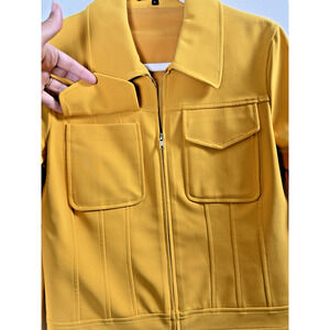 Make a confident statement with this Theory bold yellow full zip jacket. Featuring a boxy silhouette, collared neckline, two front pockets, and full lining, it combines modern structure with standout color. Perfect for layering over sleek basics for a polished, fashion-forward look.