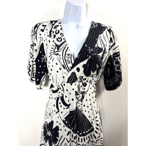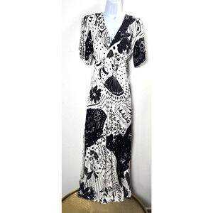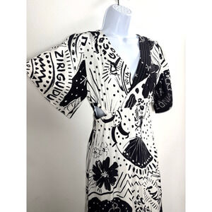 Farm Rio Black & White Cutout Maxi Dress Resortwear Vacation Size XS